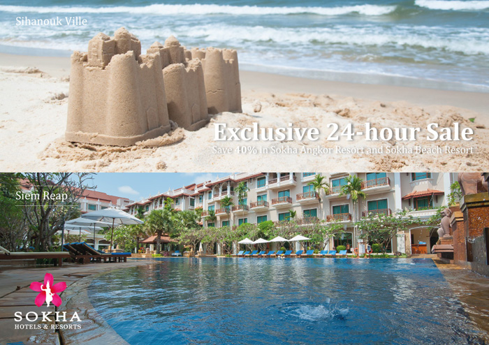 Book within the next 24hours and benefit from an exclusive 40% off from Sokha Beach Resort and Sokha Angkor Resort.
